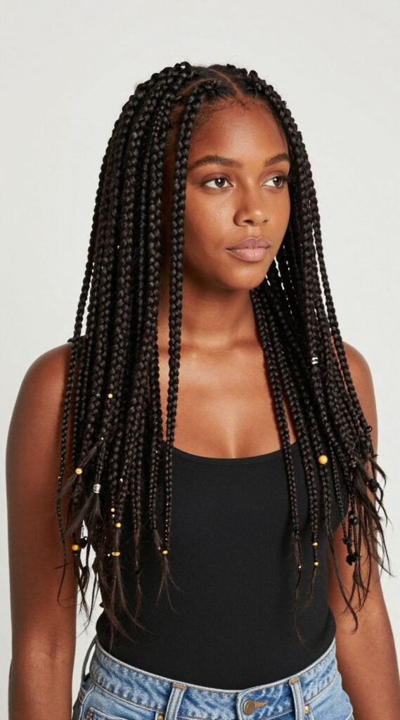 The OG, the classic, the MVP of protective styles. Box braids are those timeless beauties that give you versatility and a much-needed break from daily styling. They come in all sizes, from tiny to jumbo, and you can rock ’em up, down, or in a half-up, half-down situation.
