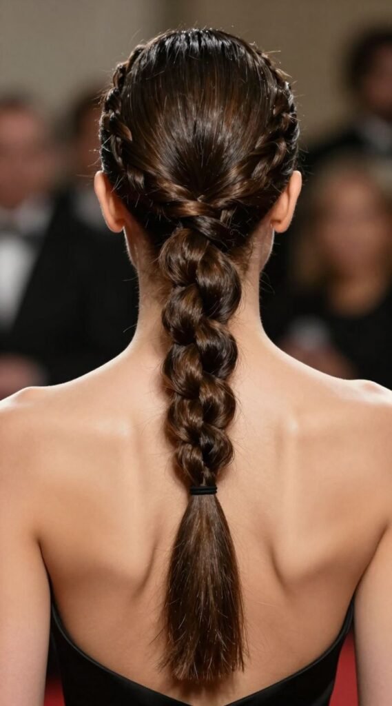 Sometimes you just need to get it all up and out of the way, but make it fashion. Braided ponytails and updos can range from a simple, sleek high pony made of long braids to intricate sculptural designs. They’re elegant and practical.