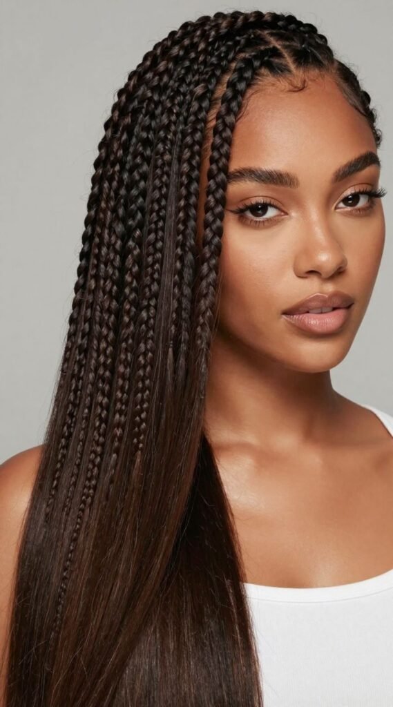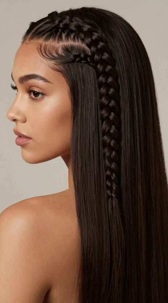 If you love the natural look of braids but crave the sleekness of straight hair, this combo is your new best friend. Feed-in braids create a seamless, scalp-hugging design that looks incredibly natural.