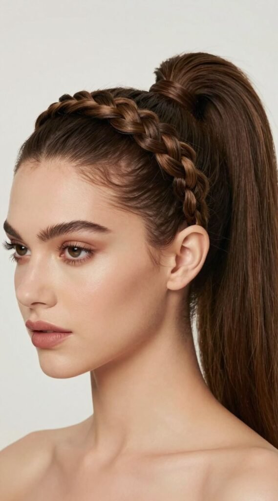 Why it works: It’s a powerful, modern look that combines the practicality of braids with the undeniable drama of a high, sleek ponytail.