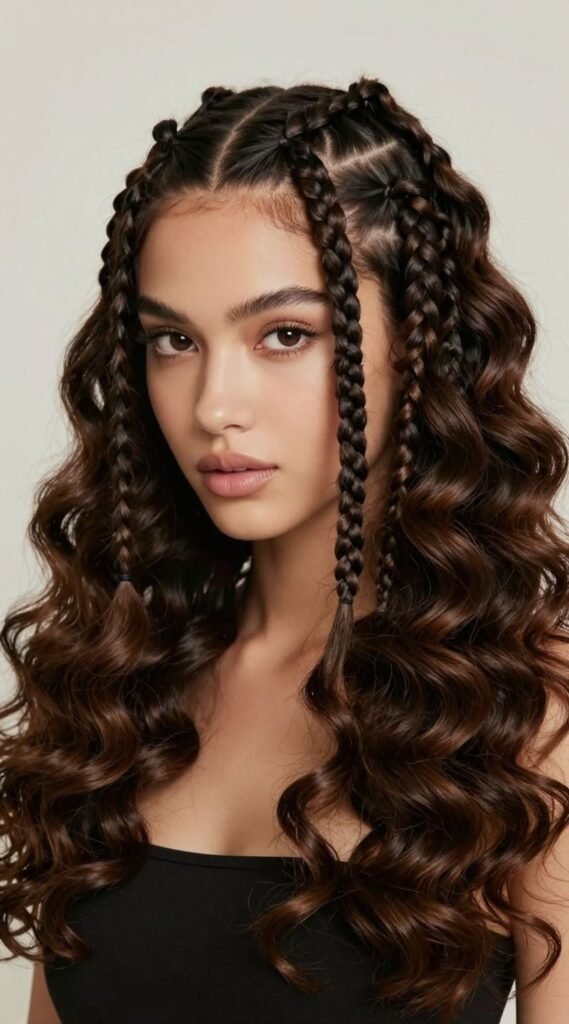 8. Zig-Zag Part Braids with Voluminous Curls