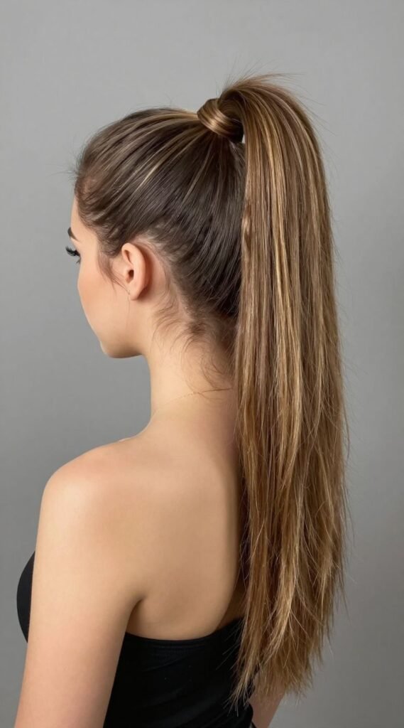 Who says ponytails can’t be fancy? Gather the top section of your hair into a high, bouncy half-ponytail, letting the rest fall long and luscious. It’s playful yet chic.