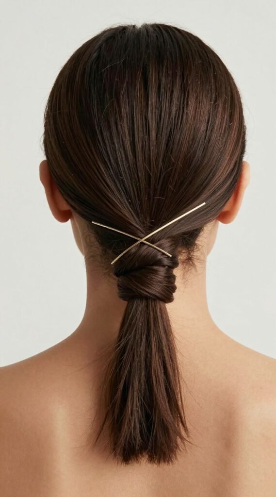 This unique style is incredibly minimalist yet super effective, giving off a chic, organic vibe. It’s a great option when you’re out of hair ties. Pro tip: Secure the knot underneath with crisscrossed bobby pins to ensure it stays put all day.