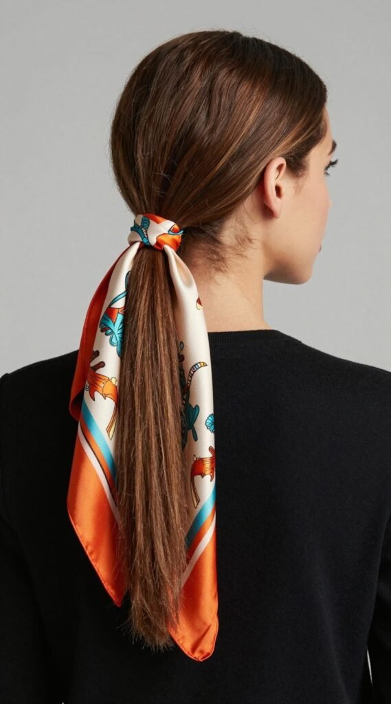 This style is perfect for adding a pop of color or pattern to your outfit and disguising any bad hair day woes. It’s super versatile with endless scarf options. Pro tip: Choose a scarf with a pattern that complements your outfit, or go for a bold solid color for a statement look.