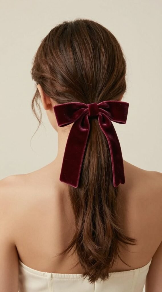 This style exudes elegance and a touch of vintage charm, perfect for adding a refined touch to any outfit. It works beautifully with longer hair lengths. Pro tip: Choose a bow that contrasts slightly with your hair color to make it really stand out.
