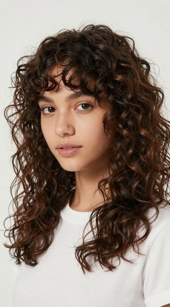 Bring on the cute factor! Curly bangs with a curly sew in and leave out is youthful, trendy, and incredibly adorable. It frames your face beautifully and adds a soft, approachable vibe. You’ll need to blend your leave out into the curly bangs, using a little product to ensure they match the texture. This style just works because it’s sweet, stylish, and full of personality.