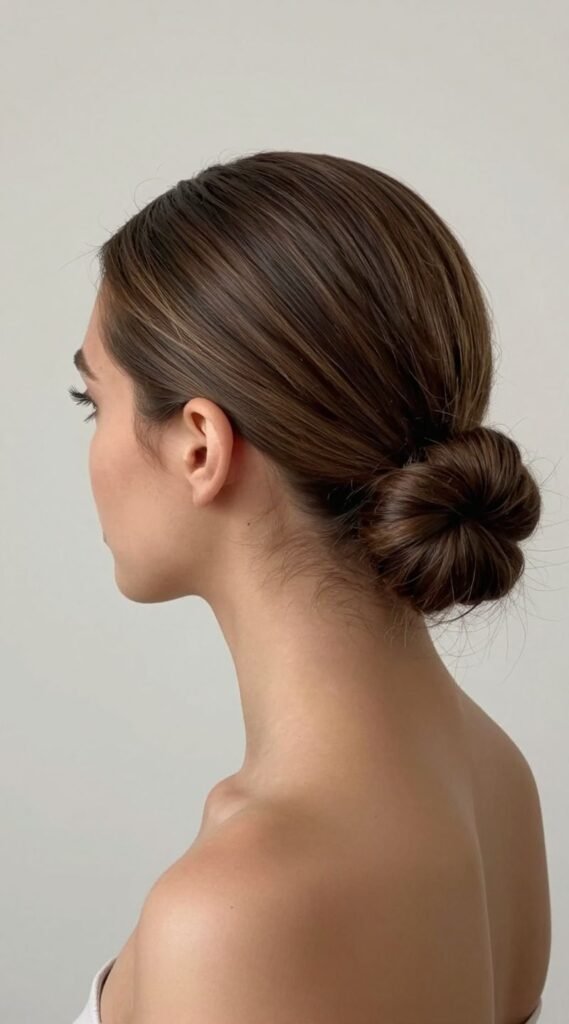 Why just pull it back when you can bun it up? This take involves slicking the top half back into a chic, tight bun. You can go for a mini top knot or a sleek low bun, depending on your vibe.